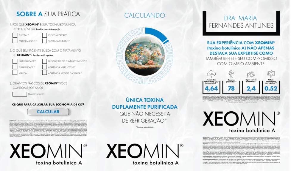 Do conceito à operação no evento, criamos uma experiência interativa que transformou dados técnicos em valor de marca. Em um encontro com médicos de toda a América Latina, a Calculadora de Sustentabilidade convidou cada participante a medir seu impacto positivo com XEOMIN de forma simples, envolvente e compartilhável.